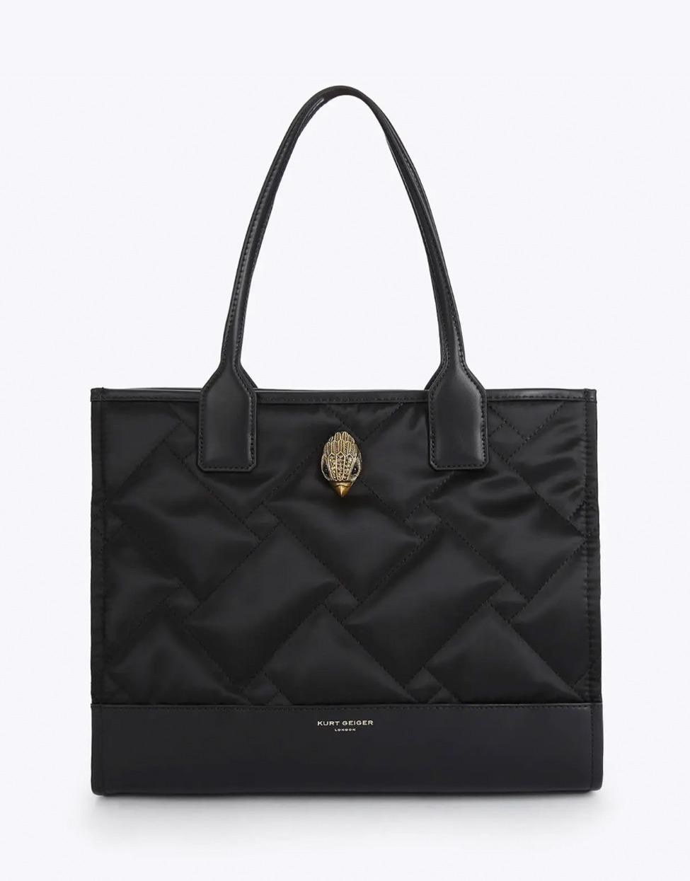 Confección en nylon reciclado con acabado acolchado y logotipo frontal Kurt Geiger Eagle Head dorado en relieve con cristales incrustados.