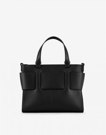 Confección en símil piel, modelo monocolor negro con una gran hebilla central.