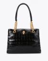 Confección en piel negra acharolada con estampado de serpiente.