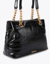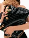 Confección en piel negra acharolada con estampado de serpiente.