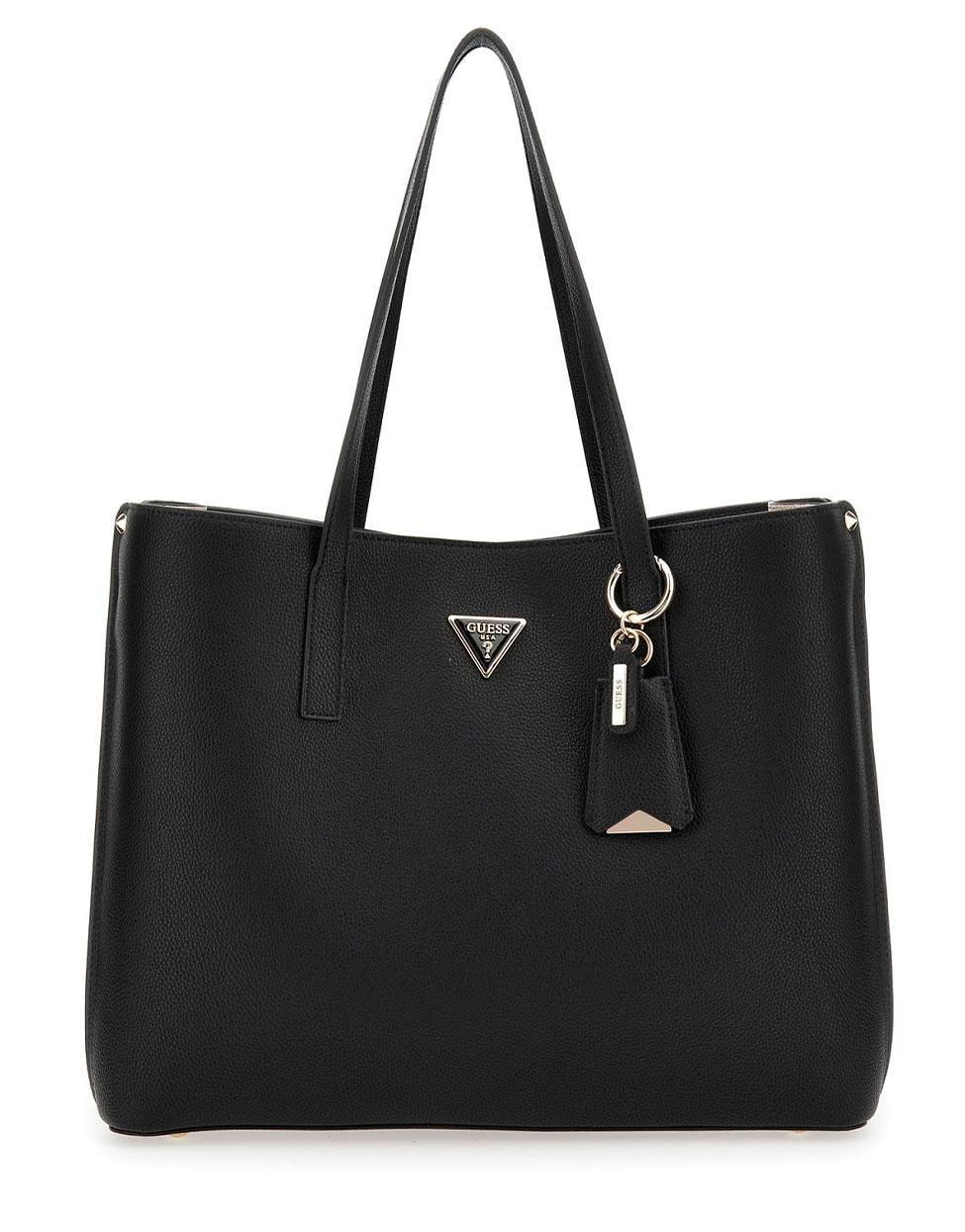 Exterior en material sintético con logotipo Guess frontal. Llavero Guess en el asa.