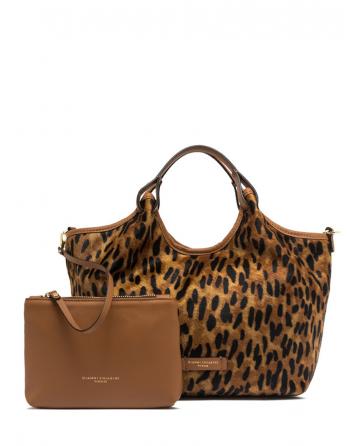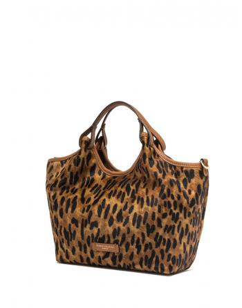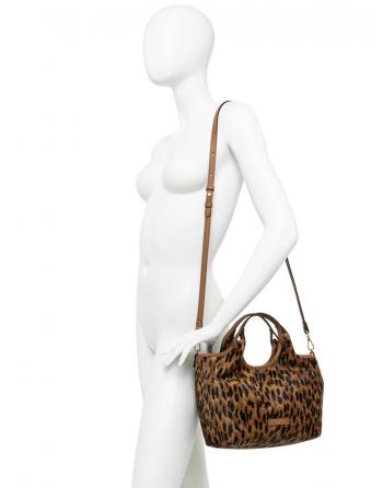 Fabricación en piel con estampado tipo leopardo.