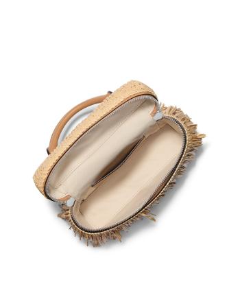 Exterior tejido a mano con ribete deshilachado.